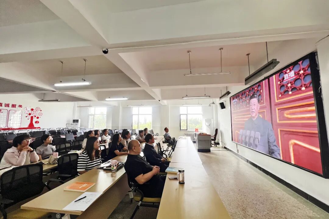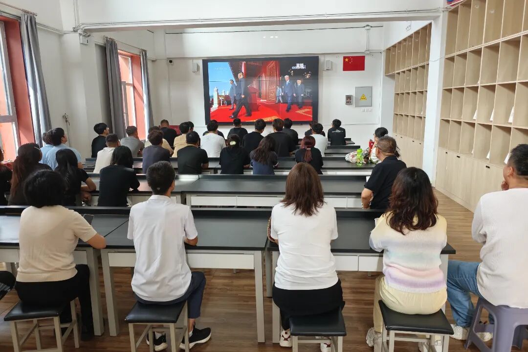 9月3日上午,纪念中国人民抗日战争暨世界反法西斯战争胜利80周年大会隆重举行,我院组织师生共同观看大会直播。师生们怀着崇敬的心情,聆听中共中央总书记、国家主席、中央军委主席习近平发表的重要讲话,重温那段艰苦卓绝、波澜壮阔的历史,感悟伟大抗战精神,凝聚爱国奋进力量。