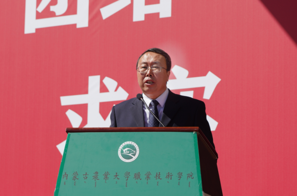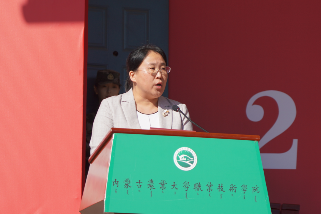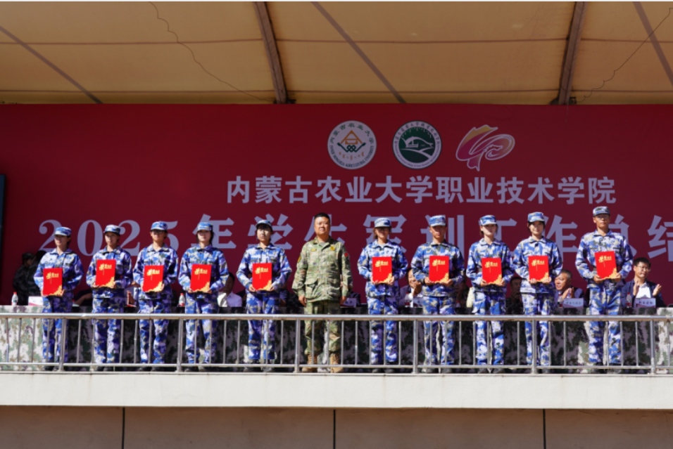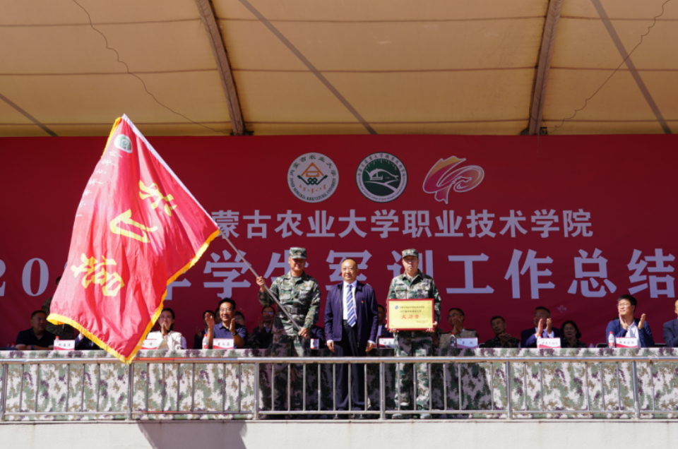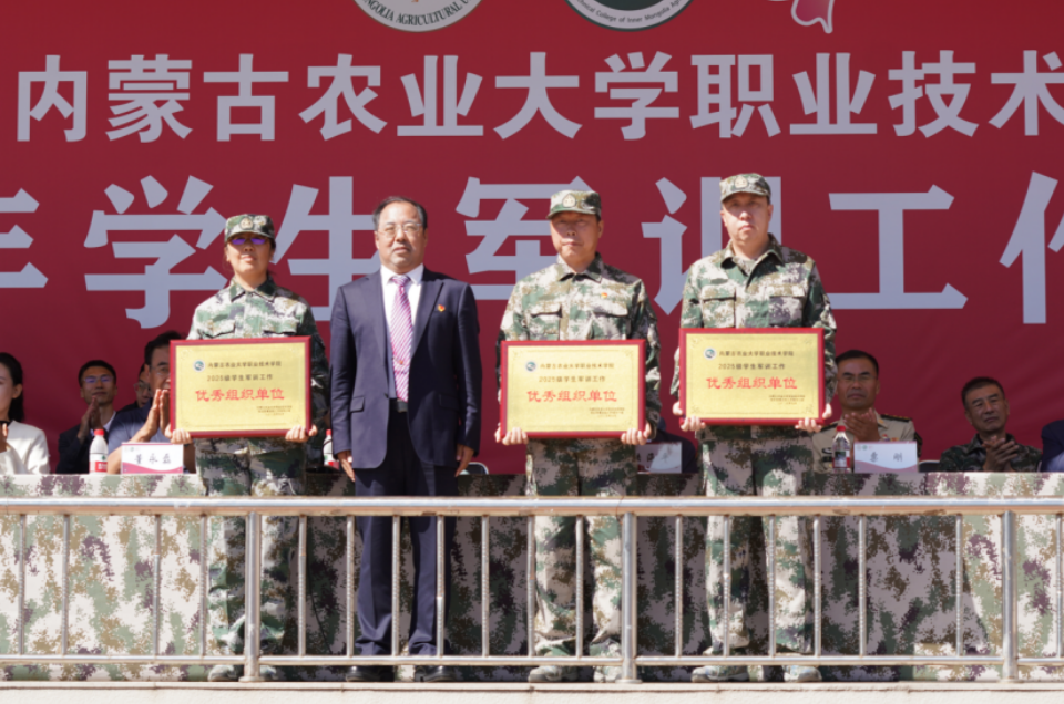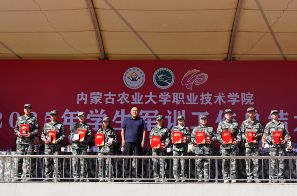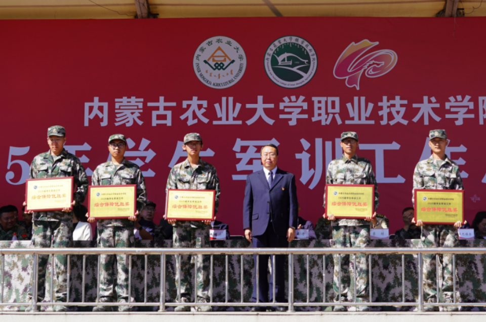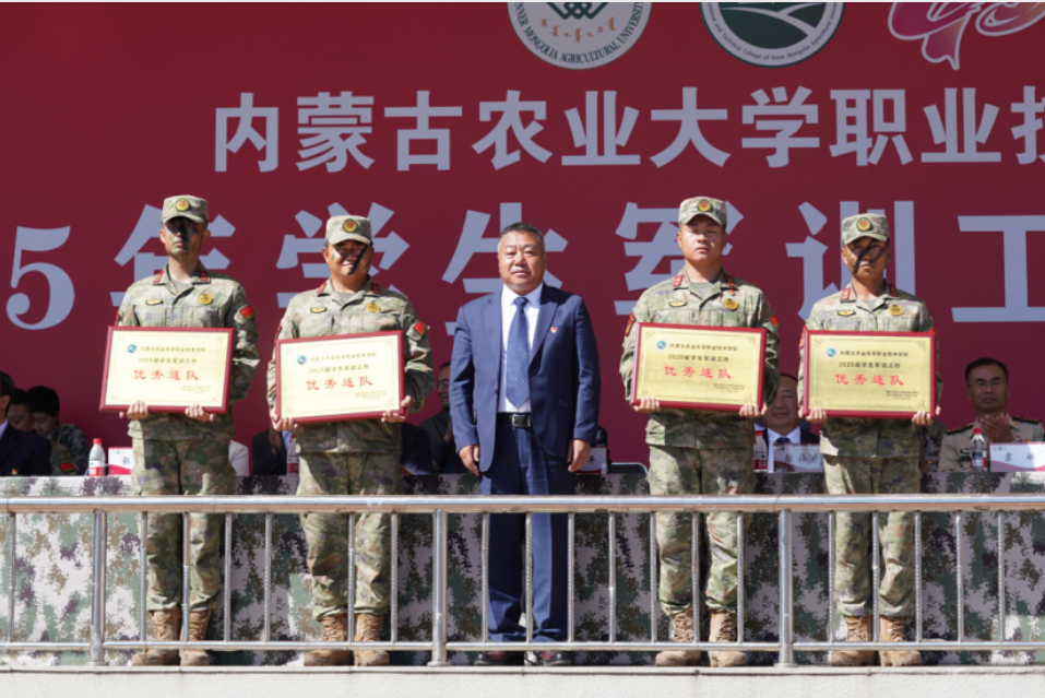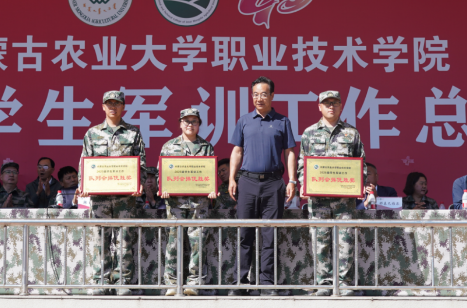校党委委员、学院党委副书记、院长那森巴雅尔为2025级学生军训优秀连队颁奖