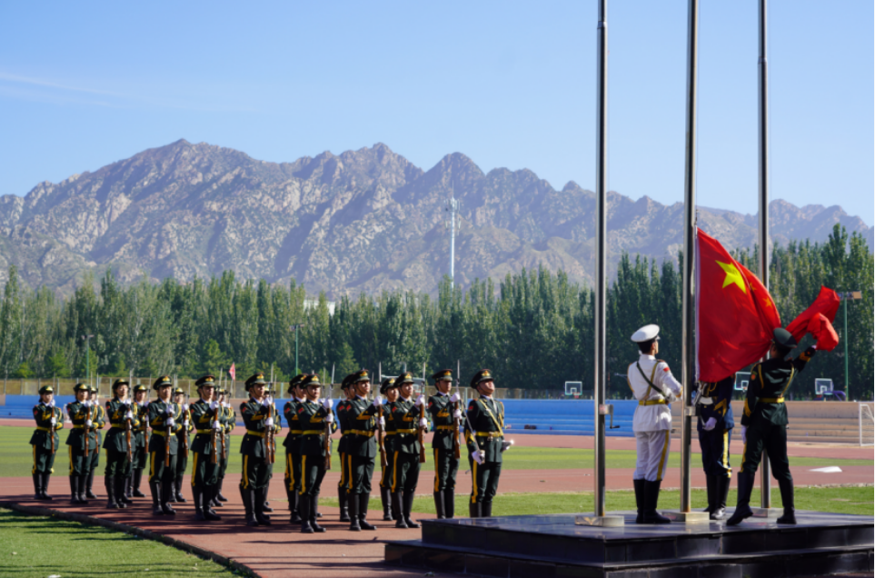大会在庄严肃穆的升国旗仪式中拉开序幕。国旗护卫队迈着整齐有力的步伐护送国旗入场,伴随着庄严的中华人民共和国国歌,五星红旗缓缓升起,全体人员庄严肃立,向国旗行军礼、注目礼,以此表达对祖国的深深敬意与满腔热爱。