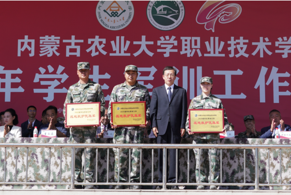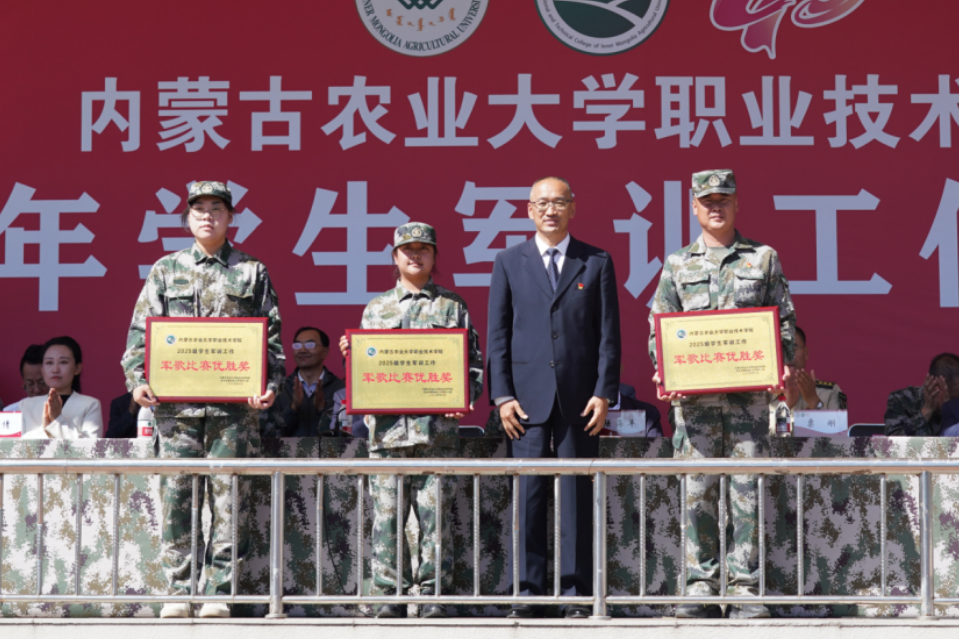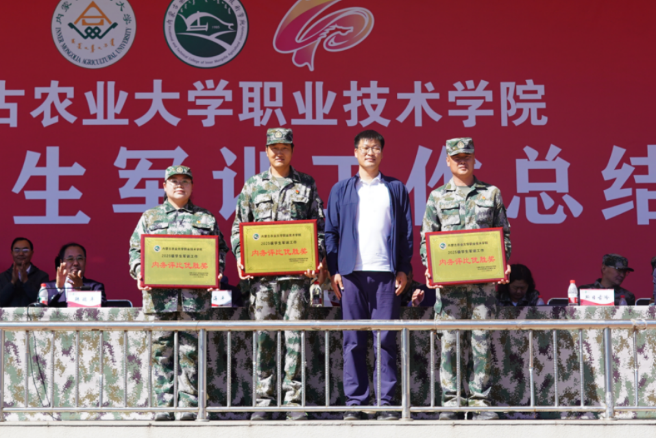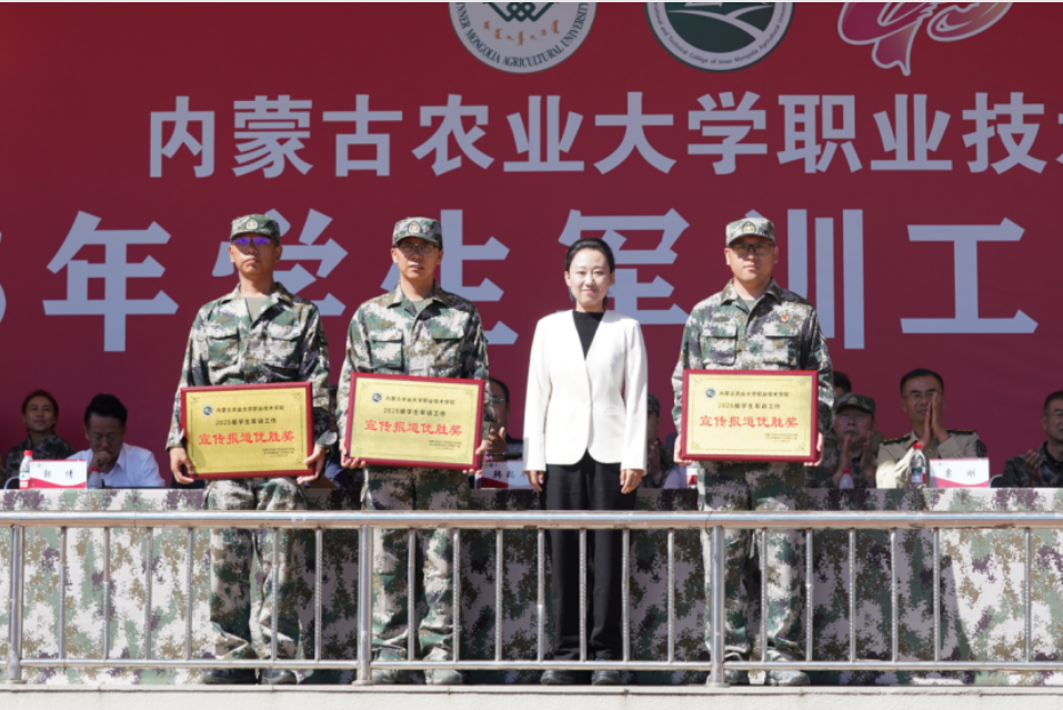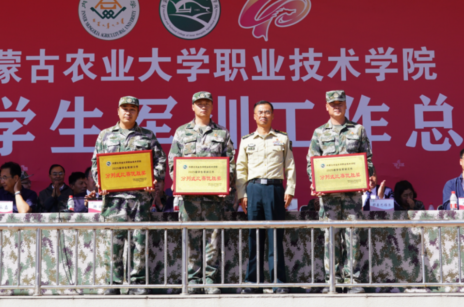 校学生工作部(学生工作处)副部长斯日古冷为2025级学生军训军歌比赛优胜单位颁奖