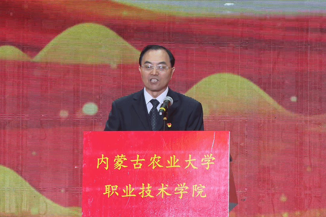 陈永胜代表学校党委,向学院致以最热烈的祝贺。他在讲话中说,学院是自治区最早开设本科专业、唯一一所培养硕士研究生的高职院校,更是自治区示范性高职院校、“双高计划”建设单位、内蒙古工匠学院,还被农业农村部评为“国家现代农业科技示范展示基地”,跻身全国职业教育第一方阵。一代代职院人矢志不渝地献身党的教育事业,为学院的发展倾注了满腔热血。迈上新征程,学院要持续提高人才培养质量,提升学院国际化水平和社会影响力,加强与校本部的全方位协同,实现资源共享、学科共建、科研互助,凝聚发展合力,努力把学院建成学科优势突出、专业特色鲜明、产教融合紧密、办学格局多元的现代高水平职业院校,为学校“上院士、冲一流”添砖加瓦,为自治区经济社会发展做出更大贡献!