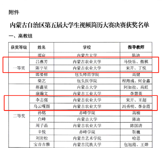 近日,内蒙古自治区高校学生就业创业服务中心公布了内蒙古自治区第五届大学生视频简历大赛获奖名单,学院学子表现突出,斩获多项荣誉,充分彰显学院就业指导与人才培养成效。
