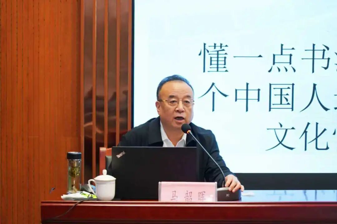 马韶晖以“中国书法与文化自信——中国书法美育漫谈”为题,从“书法的基础概念”“中国书法的起源及演变”“经典碑帖欣赏”“书法审美”等方面,通过深入浅出的案例分享与细腻生动的细节解读,对中国书法展开讲述。