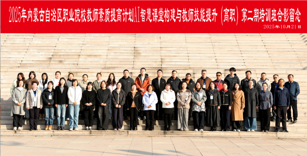10月21日,由内蒙古自治区教育厅主办、学院承办的"内蒙古自治区2025年职业院校教师素质提高计划AI智慧课堂构建与教师技能提升(高职)第二期培训班"正式开班。学院计算机技术系相关负责人及全体参训教师出席开班仪式。