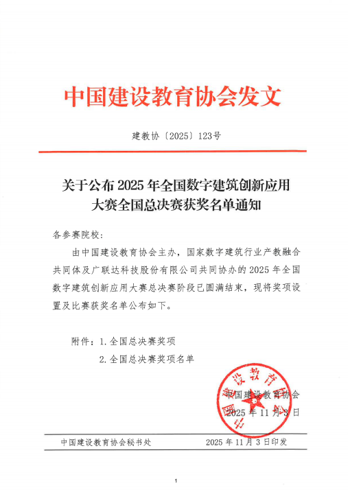 全国数字建筑创新应用大赛是推动理论与实践融合的重要平台。我院将持续聚焦行业前沿,积极适应建筑产业升级需求,进一步深化教育教学改革,为培养更多支撑建筑业高质量发展的创新型、复合型人才贡献力量。