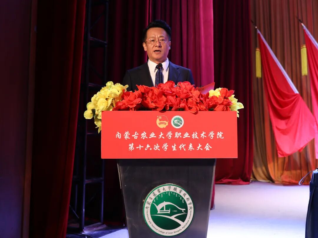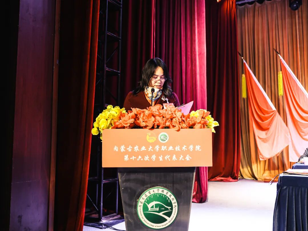 海日罕代表学校团委向大会的召开表示热烈祝贺,她肯定了学院学生会在提升同学满意度、大局贡献度和社会认可度方面取得的一系列丰硕成果。号召全院团员青年要在校党委的正确领导下,努力成长为立大志、明大德、成大才、担大任的知农爱农人才,为中国式现代化内蒙古新实践贡献青春力量。