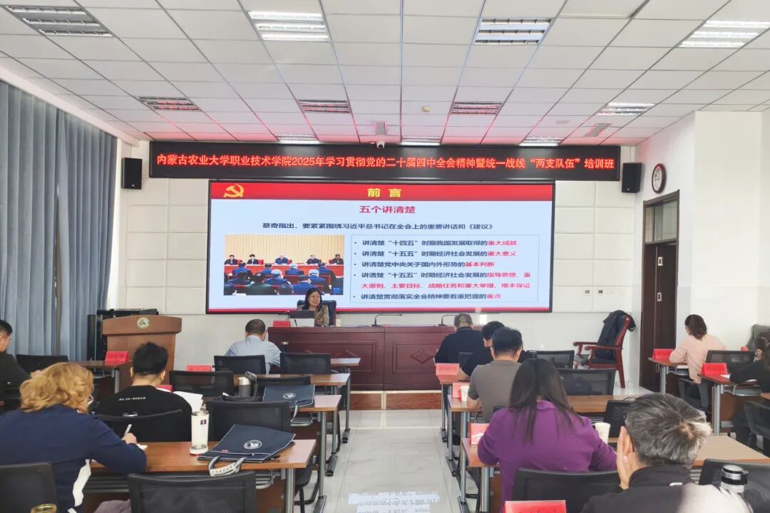 为深入学习贯彻党的二十届四中全会精神和习近平总书记关于做好新时代党的统一战线工作的重要思想,进一步提升学院党外知识分子和统战干部的政治素养与履职能力,更好的推动学院统战工作高质量发展,11月28日至12月2日,学院在内蒙古敖汉干部学院举办2025年学习贯彻党的二十届四中全会精神暨统一战线“两支队伍”培训班,这是学院首次举办统一战线“两支队伍”培训。学院党委副书记杨海升出席开班仪式并讲话,学院各党总支统战委员、党支部组织统战委员以及党外知识分子共26人参加了本次培训。