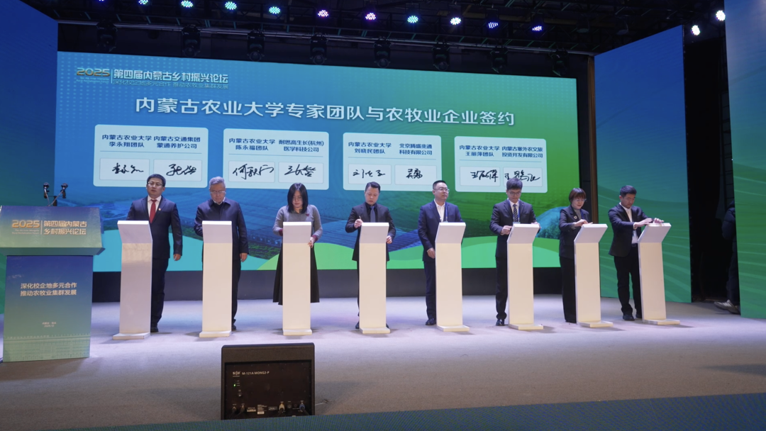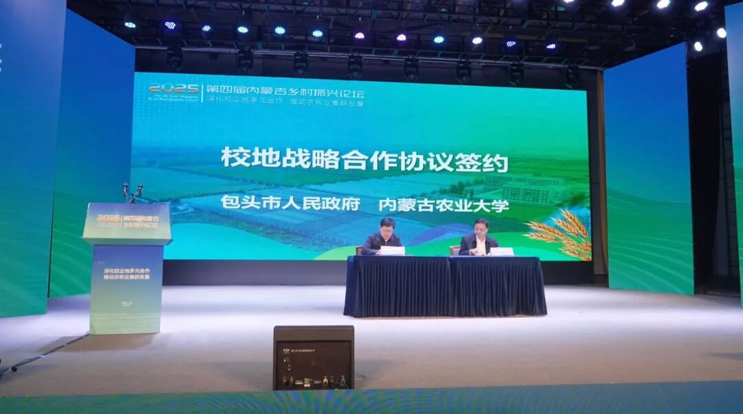 活动现场,包头市政府与内蒙古农业大学共同签署了校地战略合作协议。现场为“内蒙古农业大学包头乡村振兴研究院”及土右旗、九原区、达茂旗三个“乡村振兴综合试验站”授牌,为“敕勒川区域农业绿色发展创新中心”揭牌。此外,内蒙古农业大学专家团队与多家高新企业,以及包头市各旗县区与全国多家农牧业投资企业分批次签署了多项合作协议。