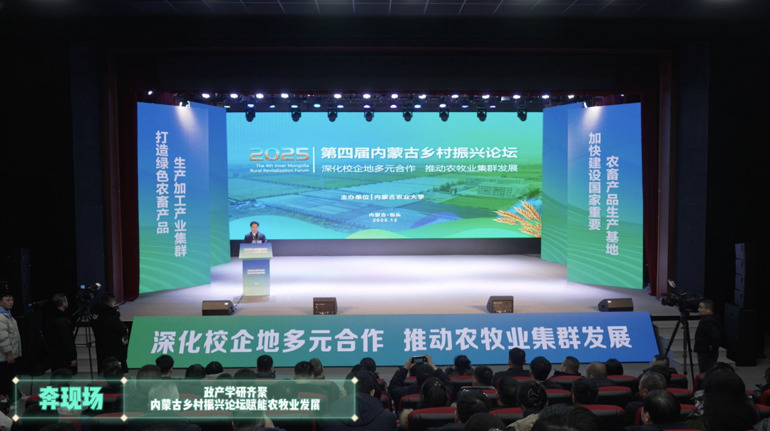 12月9日,以"深化校企地多元合作,助力农牧业集群发展"为主题的第四届内蒙古乡村振兴论坛,在内蒙古农业大学职业技术学院报告厅盛大开幕。本次论坛旨在汇聚政、产、学、研多方智慧与力量,通过深化多元协同,加速科技成果转化,为自治区农牧业现代化集群发展和乡村全面振兴注入新动能。