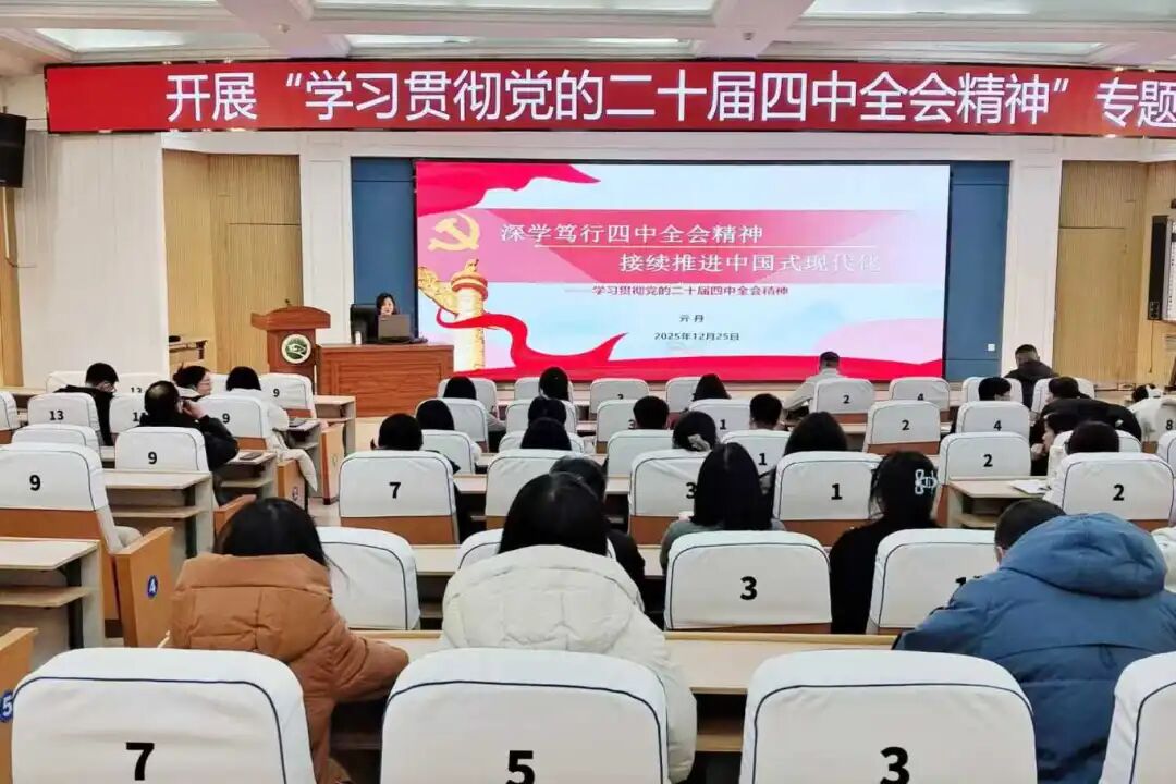 为全面深入学习贯彻党的二十届四中全会精神,深刻领会全会精神实质,准确把握实践要求,12月25日,食品工程技术系党总支在图书馆报告厅举办学习贯彻党的二十届四中全会精神专题宣讲会,特邀马克思主义学院副院长亓丹副教授作专题讲座。食品工程技术系全体师生党员及学生代表参加。