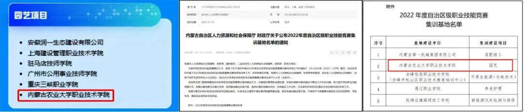 在“金地”共建方面,深化政产学研用协同育人机制。积极拓展高水平赛训平台,2022年赛训基地获批“自治区园艺赛项集训基地”,2025年成功获批第48届世界技能大赛“园艺”项目中国集训基地,实现竞赛资源与教学资源的深度融合。共建产业学院1个,年均接收学生实习100人次。学生通过基地实训、项目实践与赛训结合,参与真实生产与竞赛项目的比例显著提高,实践创新能力得到系统化锻炼。