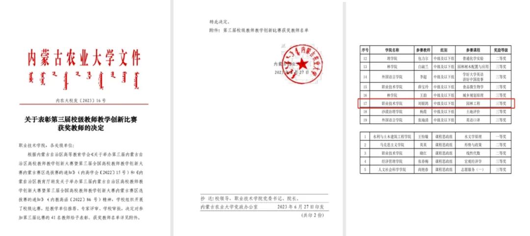 科研成果丰硕。荣获内蒙古科技进步奖二等奖1项、全国优质教育科研成果一等奖1项;在SCI、EI及国内核心期刊发表学术论文64篇,高水平论文数量较“十三五”增长近一倍;主编专著1部,发布地方标准9项、团体标准2项,登记作物新品种11个;授权国家发明专利6项、实用新型专利12项、软件著作权10项,成功实现3项核心技术转化,获转化资金31.8万元,展现了扎实的科研创新实力。