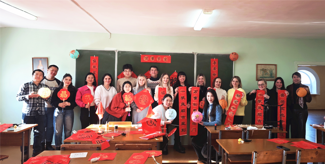 2月10日,正值中国农历北方小年,白俄罗斯国立农业学院教室内张灯结彩、年味盎然,由学院海外临时党支部精心策划的“迎新春・传文脉”中白新春文化交流活动在此温情启幕。党支部7名博士生和1名硕士生以非遗拓印、春联书写为纽带,与白俄罗斯国立农业学院师生共品中华年俗、共传中华文化,在沉浸式的文化互动中架起中白青年心灵相通的桥梁,为中白人文交流与民间友谊添上浓墨重彩的新春一笔。